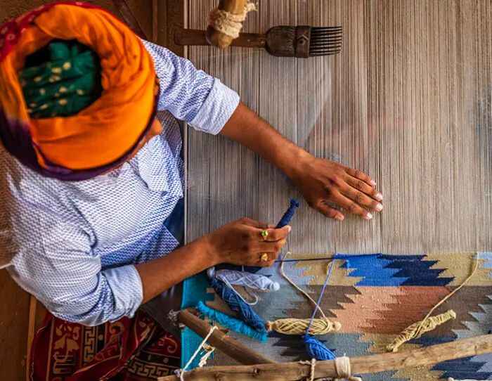At Shritija Rugs, we value the artisans and workers who bring our designs to life. We ensure safe and healthy working conditions and provide fair wages and benefits to support their well-being and livelihoods. By promoting traditional hand-weaving techniques, we not only preserve cultural heritage but also support artisanal craftsmanship, fostering economic development in local communities.